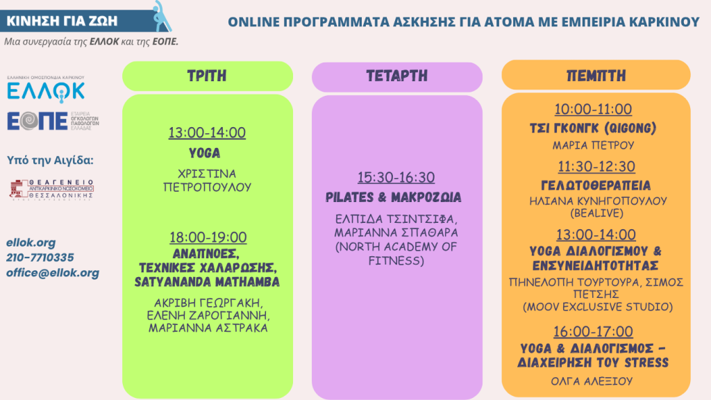 Νέος κύκλος Κίνηση για Ζωή: Online Προγράμματα άσκησης για άτομα με εμπειρία καρκίνου