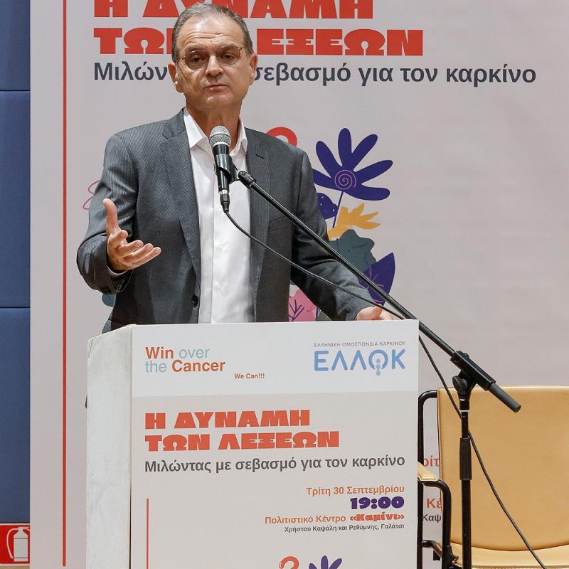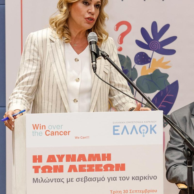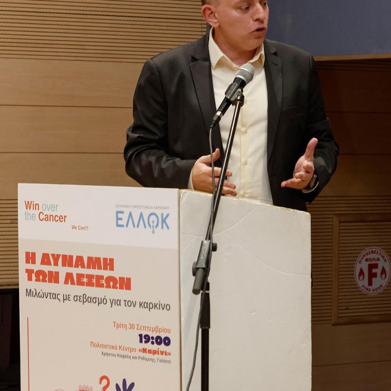 Με επιτυχία και ουσιαστικό διάλογο πραγματοποιήθηκε την Τρίτη 30 Σεπτεμβρίου, η εκδήλωση «Η δύναμη των λέξεων – Μιλώντας με σεβασμό για τον καρκίνο», που συνδιοργάνωσαν η Ελληνική Ομοσπονδία Καρκίνου – ΕΛΛΟΚ και η ΑΜΚΕ Win Cancer, στο Πολιτιστικό Κέντρο «Καμίνι», στο Γαλάτσι. Στόχος της εκδήλωσης ήταν η ανάδειξη της επίδρασης της γλώσσας στη διαμόρφωση στάσεων, αντιλήψεων και συμπεριφορών, καθώς και η δρομολόγηση πρωτοβουλιών που, μέσω της υπεύθυνης χρήσης της, θα συμβάλουν στην εξάλειψη του στιγματισμού των ανθρώπων με εμπειρία καρκίνου.